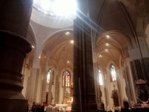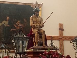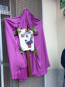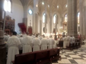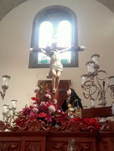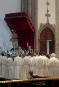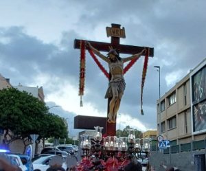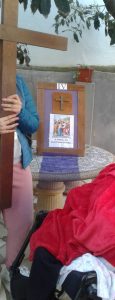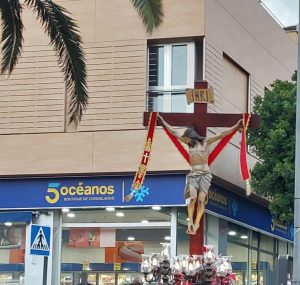 Y ya inmersas en la Semana Santa, hemos estado presentes en algunos momentos o actos de conmemoración de la Pasión de Cristo, así, acompañamos al Santísimo Cristo de Gracia, en las puertas de nuestra casa, en su traslado desde la Parroquia de Santa María de Gracia a la Parroquia de Nuestra Señora de las Nieves, hemos acudido a las Eucaristías del Domingo de Ramos en las parroquias próximas al Hogar, y también a la Misa Crismal en la Catedral de La Laguna.